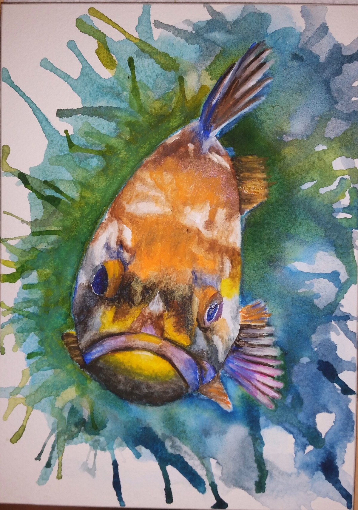 So to kick it all off, here’s a 5×7 of a grumpy copper rockfish, a watercolor on Aquabord. Finished this a couple weeks ago and it’s now on display at Evergreen Court in North Bend.
