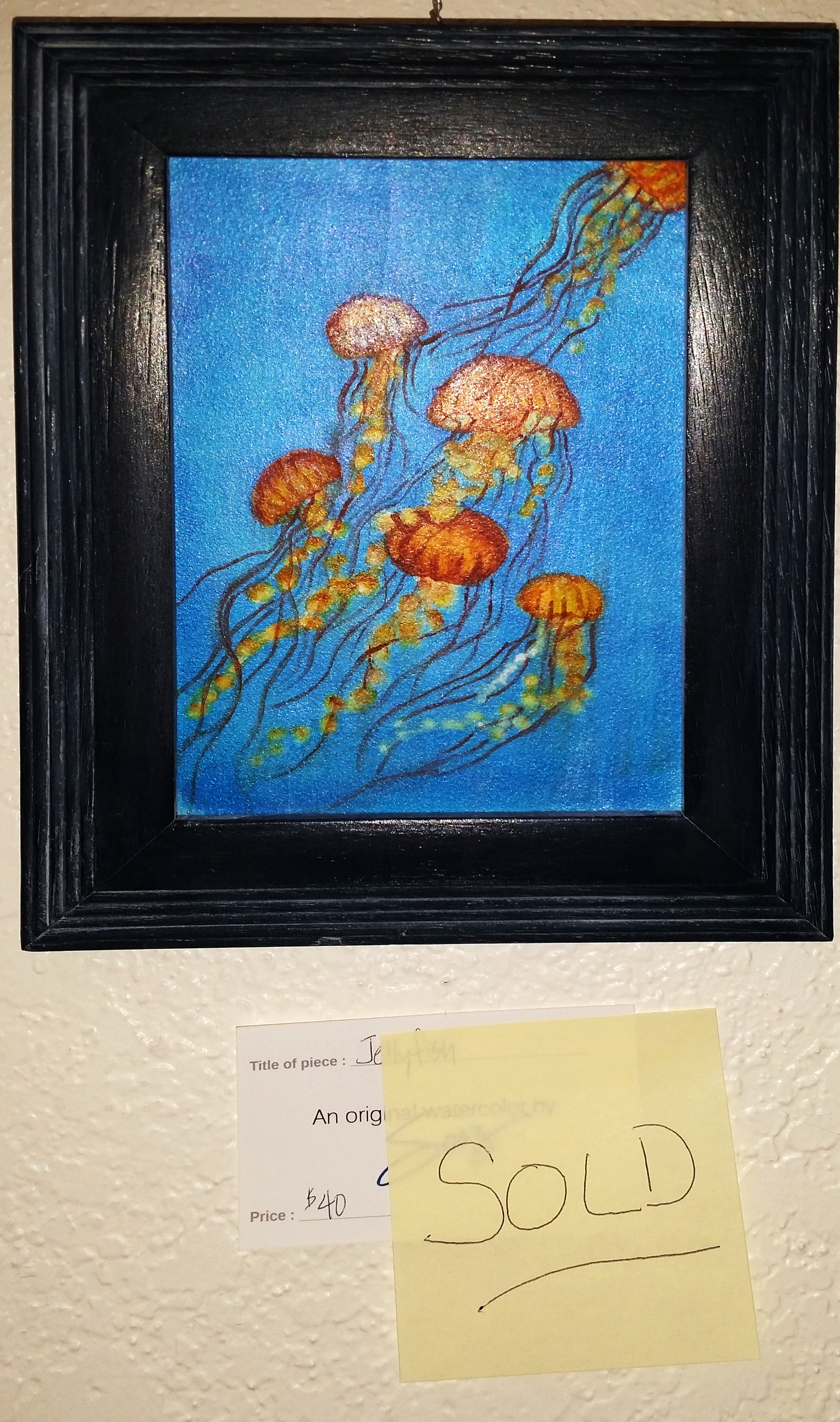It was the 5×7 of jellyfish, painted on Aquabord, that sold. I had a price of $40 on it, so I didn’t make a lot, but it was a piece that took me less than an hour to do.
