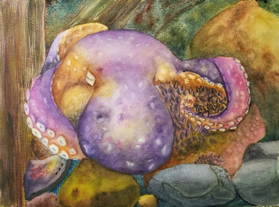 Here’s an 9×12 octopus I finished this morning that will be framed and ready for display in a week or so. Have a great Memorial Day weekend!